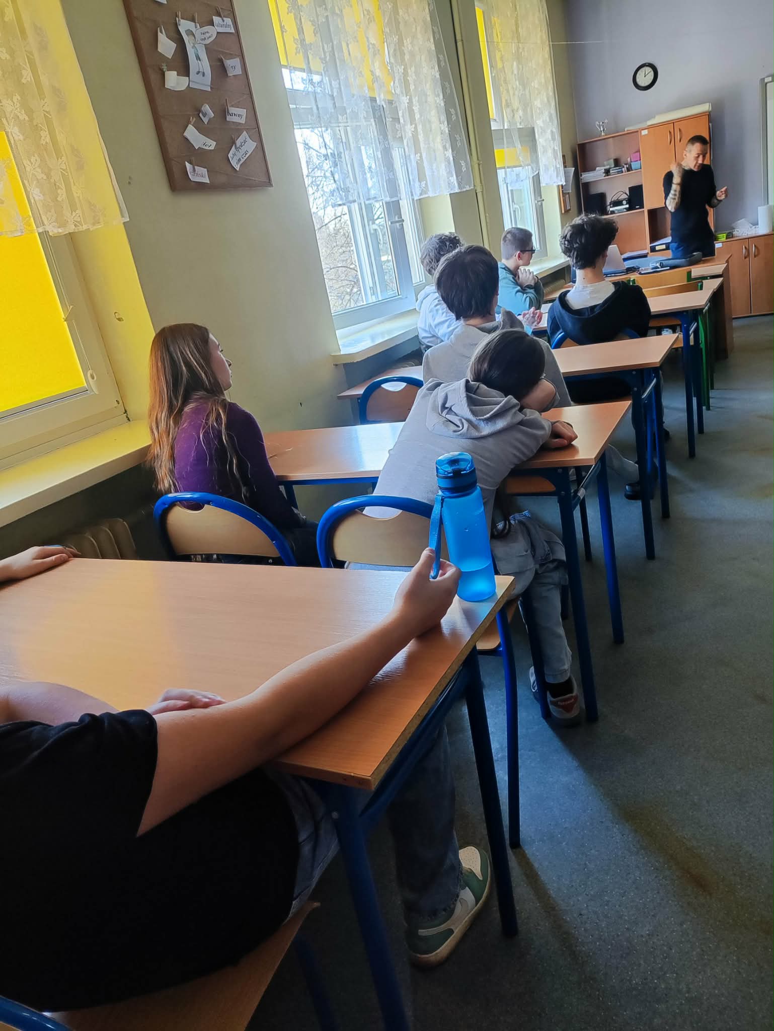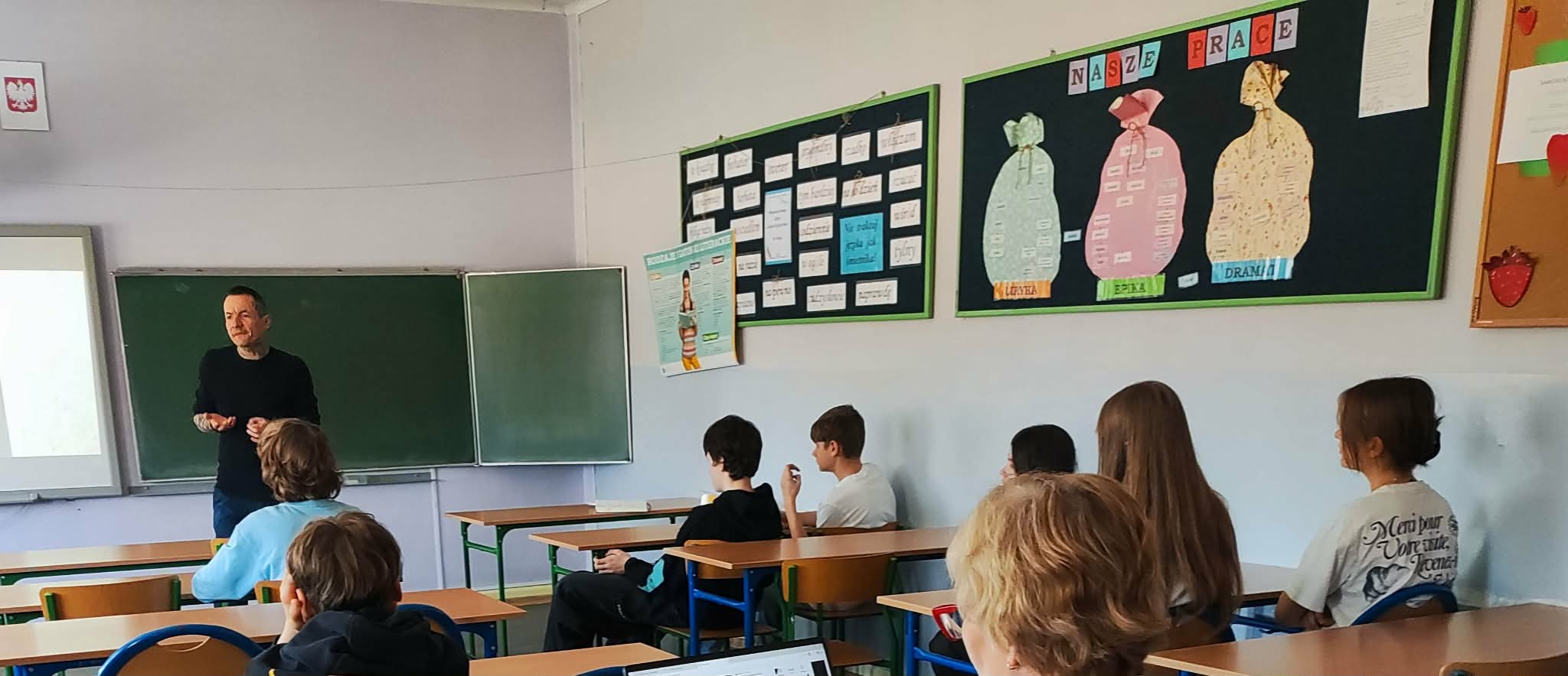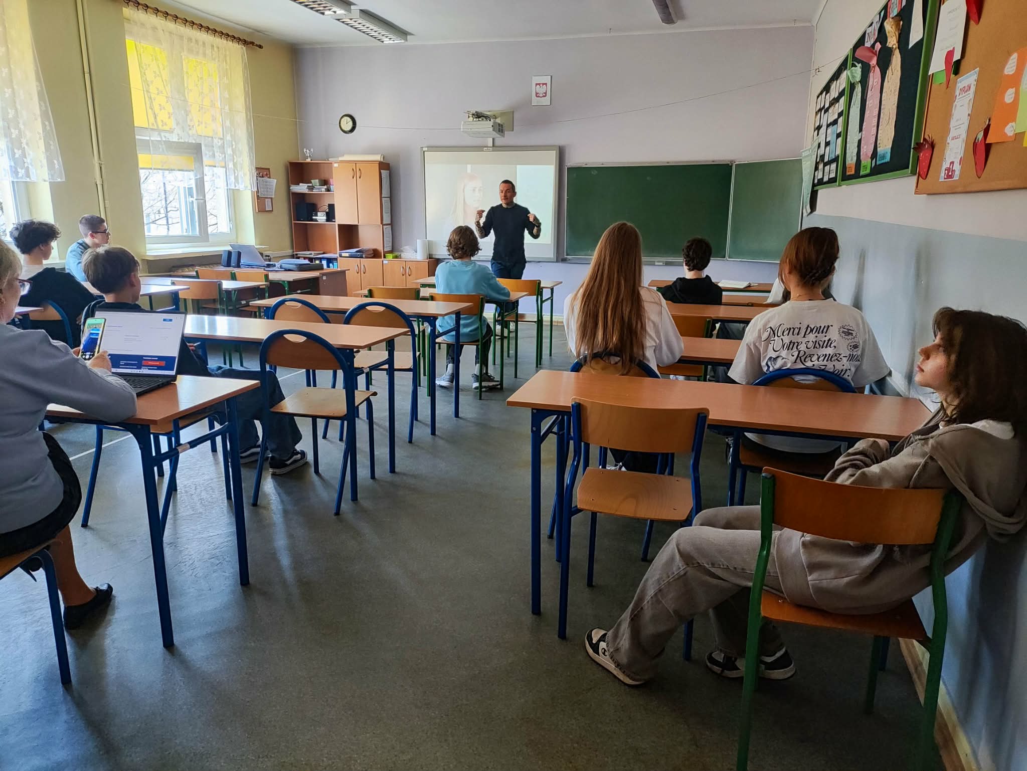 W dniach 2-3 marca odwiedził nas wyjątkowy gość: poseł na Sejm Rzeczypospolitej Polskiej - pan Marcin Józefaciuk. Ten doświadczony pedagog spotkał się z uczniami najstarszych klas i rozmawiał z nimi na temat hejtu. Nastolatkowie dostali wiele cennych rad dotyczących m.in. różnych sposobów radzenia sobie w nieprzyjemnych sytuacjach. Spotkanie było bardzo owocne. Wierzymy, że uczniowie wykorzystają zdobytą wiedzę w praktyce. Po spotkaniach w grupach rówieśniczych był też czas na zadawanie pytań, z czego uczniowie chętnie korzystali.